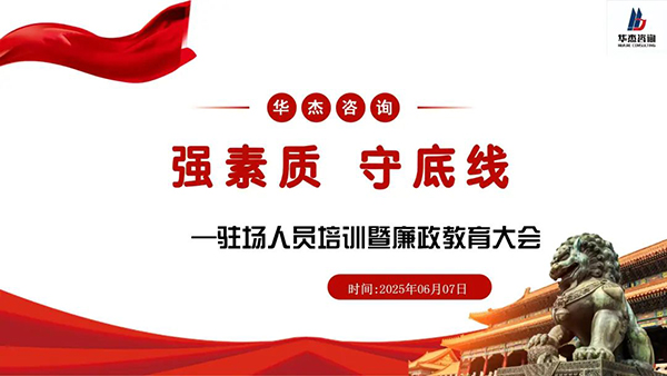 6月7日,浙江華杰工程咨詢有限公司舉辦廉政、安全生產教育與工程管理專項培訓,公司領導班子、各項目駐場人員百余人參加。培訓圍繞廉政、安全生產教育和專業賦能展開。...