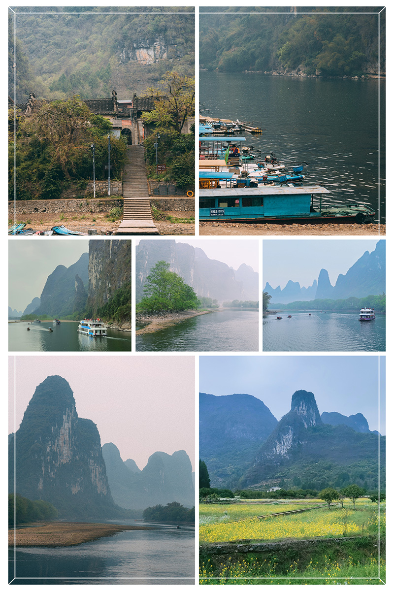 桂林山水甲天下,漓江作为桂林山水的最佳代表,来桂林一定要游览漓江,漓江奇峰夹岸,水波缠绵,风景秀丽,宛如一幅精彩的百里画,画卷随着游船顺流而下逐渐展开,在游船上感受唐代诗人俞笔卜:“订做青罗带,山如碧长簪”的漓江风光。导游一路讲解途中的景点,真所谓想像想像越想越像,一路上有鲤鱼挂壁、神笔山、苹果山、童子拜观音、九马画山等等……秀美的风光近在咫尺,让人流连忘返。