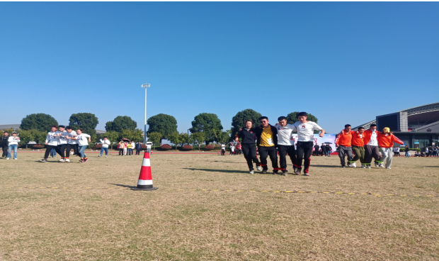 在四人五足的比赛环节中,四名队员齐心协力,保持口令一致、步调一致、节奏一致,稳步前行地完成比赛项目。呼啦圈过山车比赛过程中,在没有准备好的状态下听到比赛哨声匆忙应战,乱了节奏没有发挥出应有的水平,但是队员们并没有气馁,还是全身心投入后面的比赛准备中,在疯狂毛毛虫比赛最终取得了第一名的好成绩。